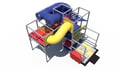 The IP23144 is a spacious play structure for children aged 2-12, accommodating up to 30 kids, with dimensions of 20'-9'' L x 16'-4'' W x 15'-10'' H.