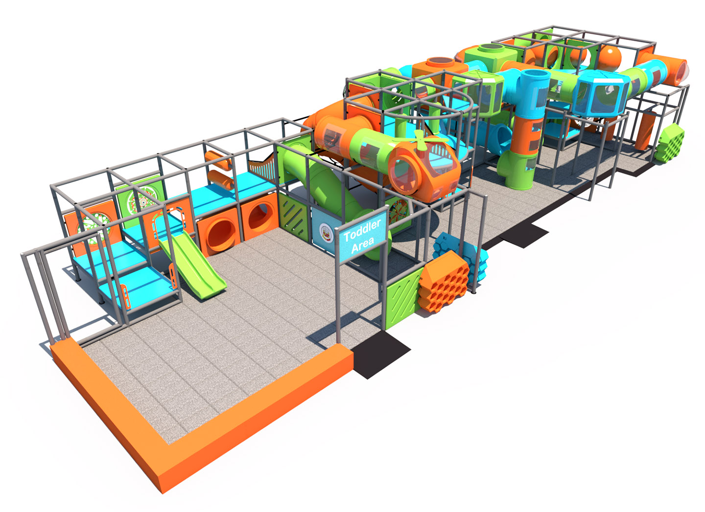 The IP23153 is an expansive play structure for children aged 2-12, designed to accommodate up to 90 kids, with dimensions of 58'-9'' L x 21'-10'' W x 11'-5'' H.